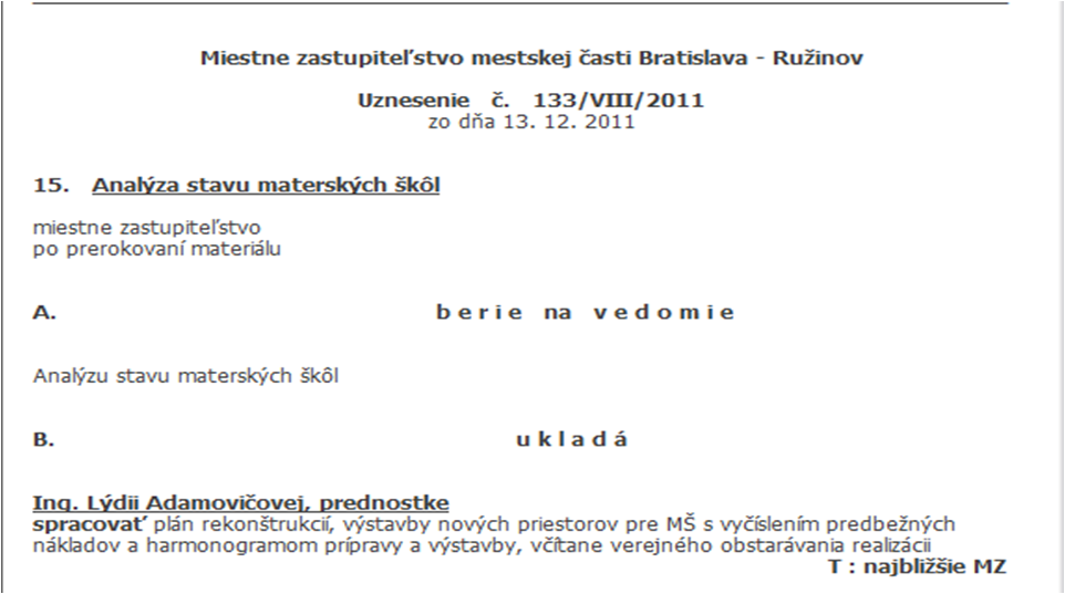návrhu uznesenie spracoval MÚ Analýzu s návrhmi riešení a na poslednom